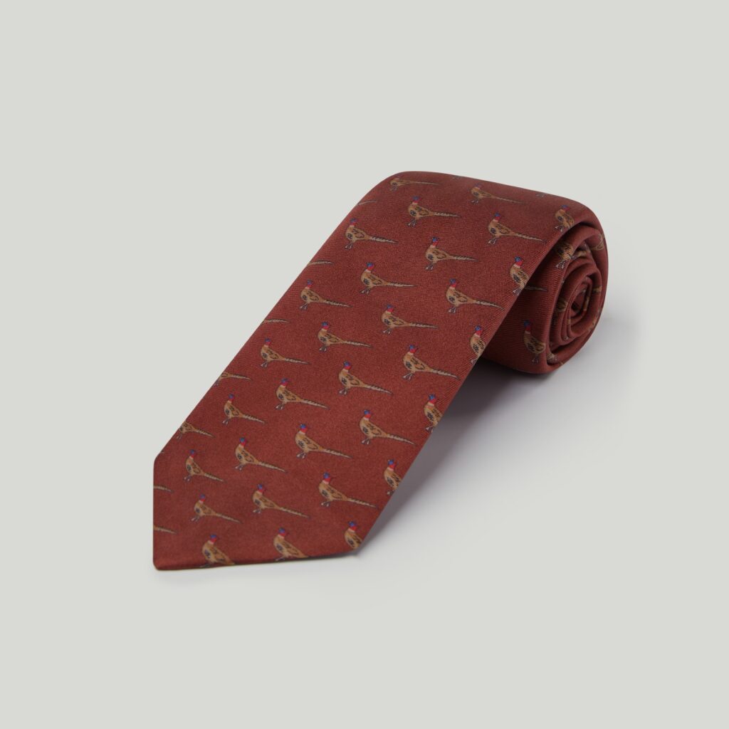 Tie & Hank: Burgundy horses woven tie or green pheasant printed silk hank