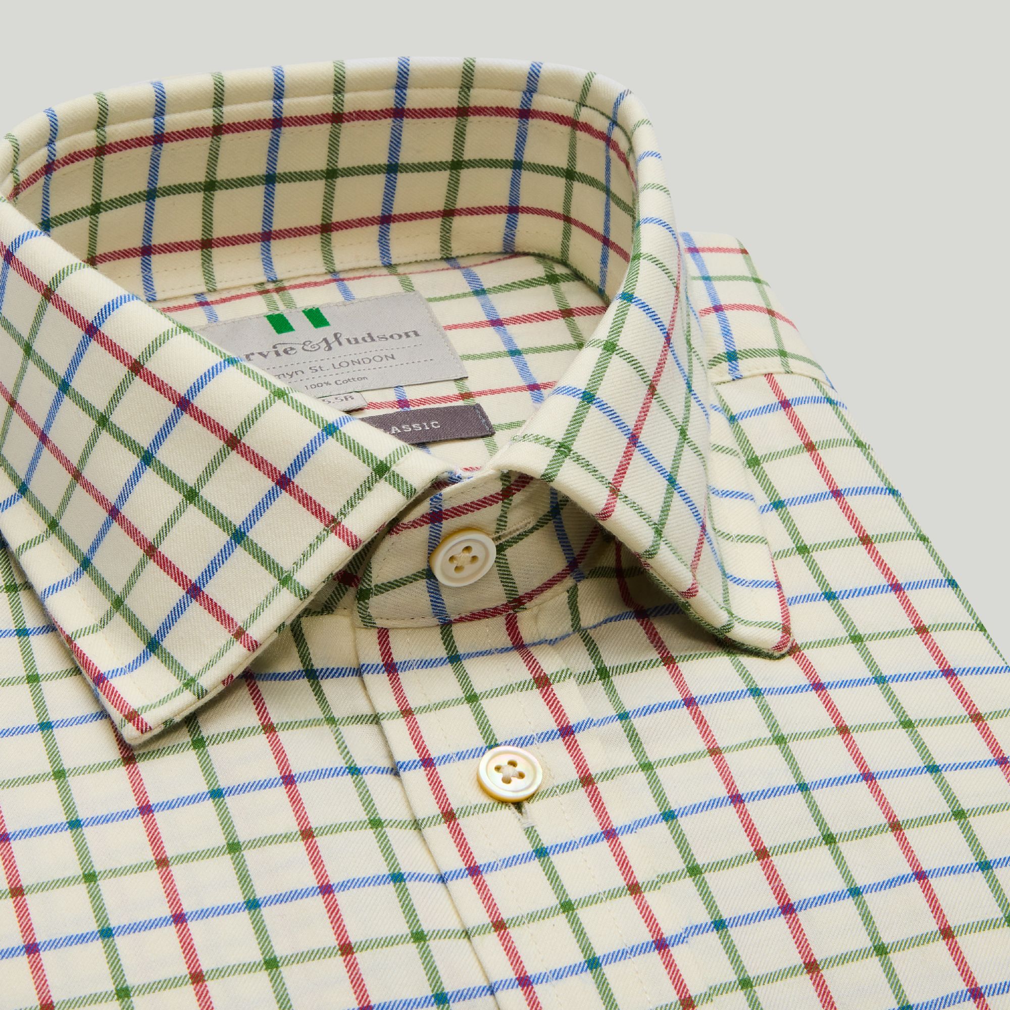 Shirt: Green and red country check button-cuff shirt